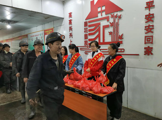 本网织金讯 今年中秋恰逢国庆,10月1日,富祥煤矿开展“送温暖、嘱平安”活动,向节日期间坚守岗位的职工送去了节日的祝福。